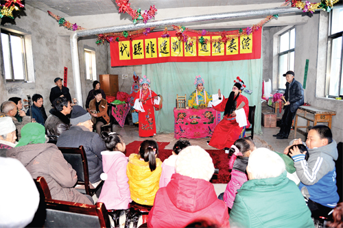 為了搶救劉街道情“非遺”劇種,弘揚(yáng)和傳承雁門文化,新高鄉(xiāng)劉街村“ 兩委”班子多方籌措資金,購買服裝道具和文武場樂器,于近期成立了由30多人組成的劉街道情劇團(tuán),由老藝人傳授技藝。他們經(jīng)過3個(gè)多月的精心排練,已排練出《李大開店》、《夜宿花亭》、《雷橫磕枷》、《大上吊》、《劈棺》、《耍火》等8個(gè)劇目,將于元宵節(jié)期間亮相于縣城街頭,向全縣人民匯報(bào)演出。圖為熱心觀眾觀看劉街道情《李大開店》劇目的排練。(石俊文 劉睿 攝)