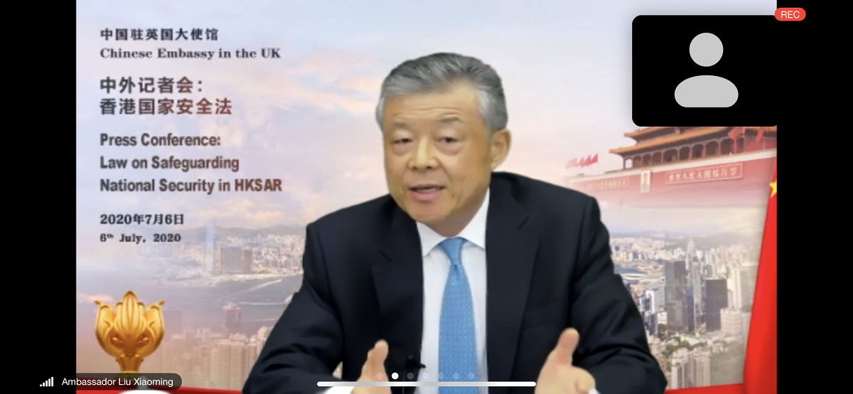 中國(guó)駐英國(guó)大使劉曉明當(dāng)天在中國(guó)駐英大使館舉行在線視頻中外記者會(huì),就香港國(guó)安法闡述中國(guó)政府立場(chǎng)。劉大使表示,國(guó)安立法從國(guó)家層面立法建立健全香港維護(hù)國(guó)家安全的法律制度和執(zhí)行機(jī)制,得人心、順民意,勢(shì)在必行、刻不容緩。