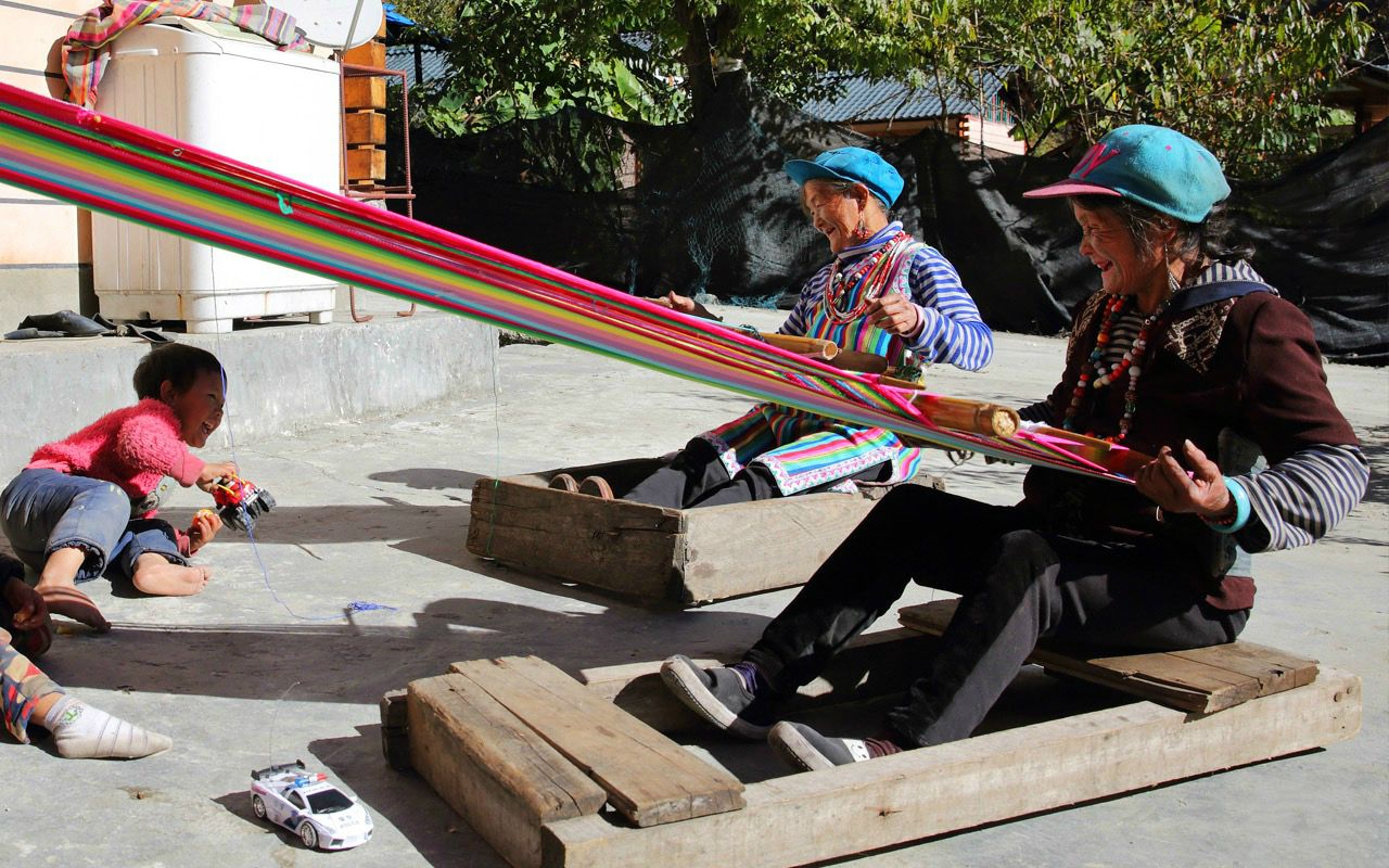 △獨龍族紋面女在織當(dāng)?shù)靥赜械莫汖執(zhí)骸?/span>