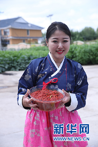 “明花辣白菜”制作者李貞淑是遼寧開源人,2011年嫁到阿榮旗新發(fā)鄉(xiāng)東光村。她的婆婆鄭明花經(jīng)營一家營業(yè)面積1400平方米,員工20人的朝鮮族特色美食餐廳,在致富同時帶動了當?shù)芈糜螛I(yè)發(fā)展。在婆婆鄭明花指導下,李貞淑學習了朝鮮族美食傳統(tǒng)制作工藝,成為阿榮旗非物質(zhì)文化遺產(chǎn)傳承人。