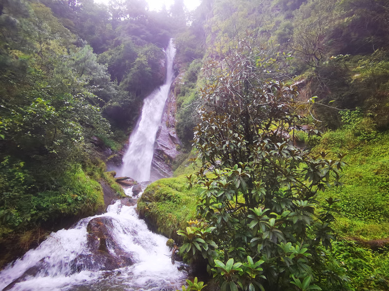 山間時有瀑布濺起水花,淌成潺潺的清澈溪水。你甚至能看到野生猴子出沒于公路兩旁,牦牛走在路邊,悠悠然地目送著一輛輛汽車離開。