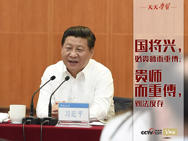 2013年9月9日,正在烏茲別克斯坦進(jìn)行國(guó)事訪問(wèn)的習(xí)近平總書(shū)記向全國(guó)廣大教師致慰問(wèn)信,送上節(jié)日祝福,指出全社會(huì)要大力弘揚(yáng)尊師重教的良好風(fēng)尚,使教師成為最受社會(huì)尊重的職業(yè)。