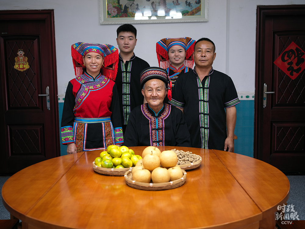 △朱中雄(中)一家當(dāng)天拍的全家福。(總臺央視記者彭漢明拍攝)