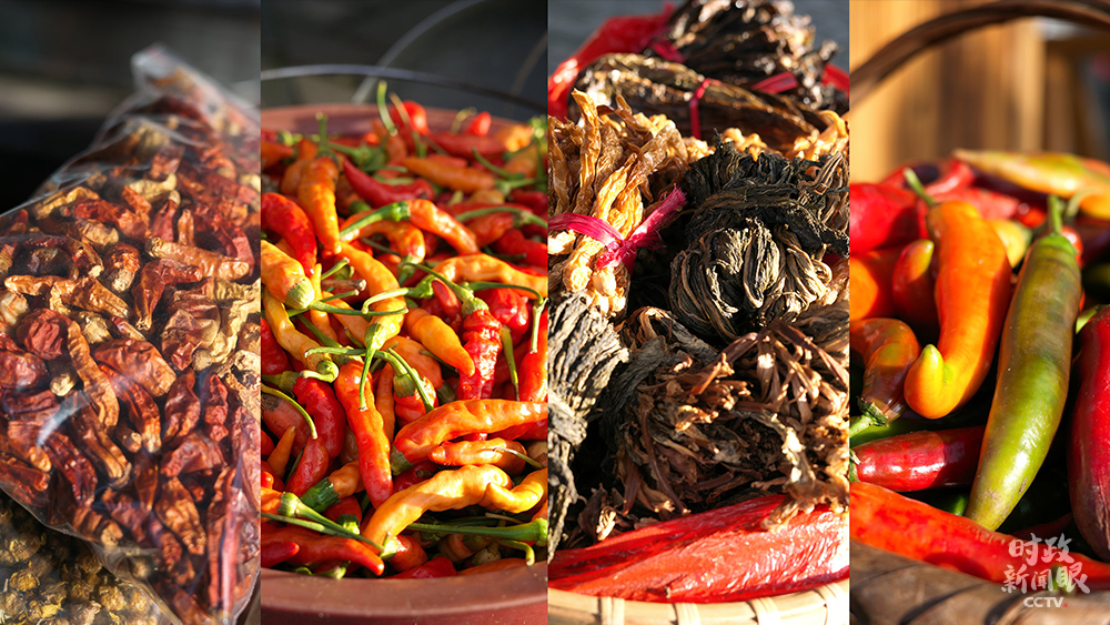 △ 沙洲村當(dāng)?shù)氐耐撂禺a(chǎn)以辣椒為主,包括鮮辣椒、干辣椒和腌辣椒等。(總臺央視記者彭漢明拍攝)