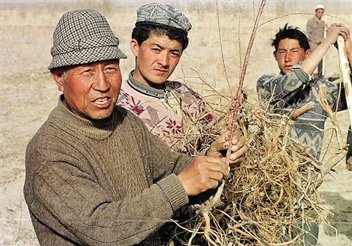 在新疆防沙治沙這條艱苦的道路上,劉銘庭一干就是60余年。為了摸清沙漠“脾氣”,他曾繞著塔里木盆地轉(zhuǎn)了7圈,走了約40萬公里。經(jīng)過反復(fù)考察研究,劉銘庭成功培育出既能防風(fēng)固沙又能創(chuàng)造經(jīng)濟(jì)效益的紅柳肉蓯蓉。通過大規(guī)模種植紅柳肉蓯蓉,新疆策勒縣、于田縣已擺脫“沙逼城下”之困,曾經(jīng)深度貧困的農(nóng)戶靠著它蓋起了新房,買上了汽車。