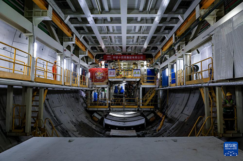 1月6日,“深江1號”盾構(gòu)機在珠江入??诤F矫嫦戮蜻M。(新華社記者 毛思倩 攝)
