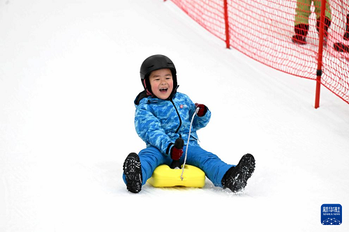 1月11日,小朋友在石家莊市“熱雪奇跡”滑雪場體驗冰雪運(yùn)動。(新華社發(fā) 陳其保 攝)