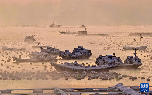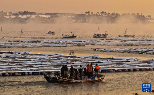 1月12日,雪后的山東省榮成市愛倫灣海洋牧場(chǎng)出現(xiàn)“海浩”景觀。據(jù)悉,“海浩”景觀是一種在嚴(yán)寒天氣下出現(xiàn)的自然奇觀,表現(xiàn)為海面或湖面上水汽蒸發(fā)后遇冷凝結(jié),形成白茫茫的霧氣,如同水面沸騰一般。