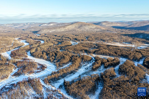 這是1月15日在根河市拍攝的根河源國家濕地公園景色(無人機照片)。(新華社記者 馬金瑞 攝)