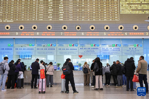 1月19日,旅客在南京南站售票處購買火車票。(新華社發(fā) 蘇陽 攝)