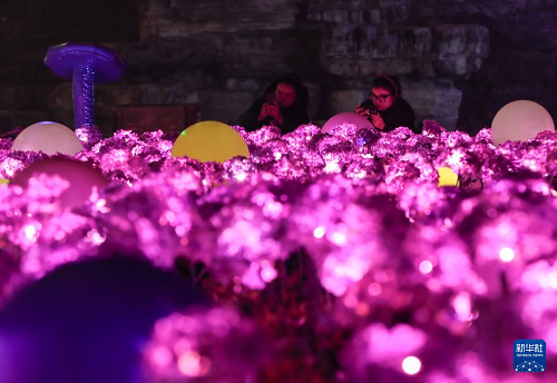 1月24日,游客在“天宮燈會(huì)”上游覽。(新華社記者 單宇琦 攝)