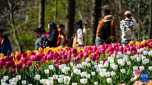 近日,貴州省黔南布依族苗族自治州龍里縣龍架山國家森林公園內(nèi)的數(shù)萬株郁金香競(jìng)相綻放,吸引各地游客前來游玩賞景。