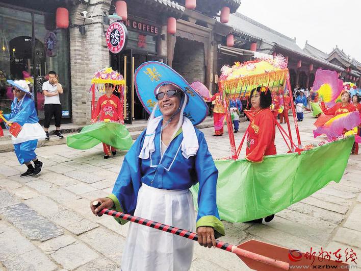 漫步在忻州古城街頭,一個個具有濃厚地方文化特色的表演節(jié)目,如五臺秧歌、巾幗鼓舞、五臺山佛樂、旱船表演等輪番上演,讓游忻州古城的市民和外地游客深深領略到了五臺的風土人情,近距離感受到了五臺縣非物質文化遺產的魅力和特色文化旅游資源的風采。