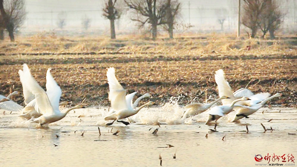 據(jù)了解,天鵝主要棲息于海岸、湖泊等水域,成對或結(jié)群活動,以各種水生植物和藻類為食,而且,天鵝對棲息地生態(tài)環(huán)境要求極高,一般選擇無污染、食物充足的濕地作為棲息地。近年來,我市持續(xù)加大生態(tài)建設(shè)力度,不斷改善生態(tài)環(huán)境,滹沱河、雙乳湖等地,都已經(jīng)成為多種鳥類遷徙的中轉(zhuǎn)站和棲息地。(郭耀華 攝)