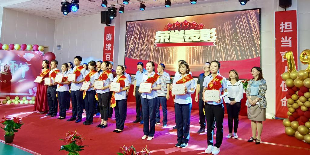 活動(dòng)現(xiàn)場(chǎng),學(xué)校對(duì)14名優(yōu)秀教師進(jìn)行了表彰,其中1名為優(yōu)秀教育工作者,8名為模范教師,5名為模范班主任。通過(guò)表彰先進(jìn),鼓勵(lì)老師們?cè)俳釉賲枺^續(xù)發(fā)揮愛(ài)崗敬業(yè)、立德樹(shù)人,三尺講臺(tái)育英才的精神,為下一代成長(zhǎng)教育發(fā)揮更大的作用。