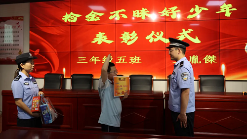 近日,河曲縣公安局民警帶著感謝信和獎(jiǎng)品走進(jìn)黃河路小學(xué),為拾金不昧的王同學(xué)舉行了一場(chǎng)特別的“頒獎(jiǎng)儀式”,用滿滿的儀式感鼓勵(lì)同學(xué)們大力弘揚(yáng)社會(huì)正能量。