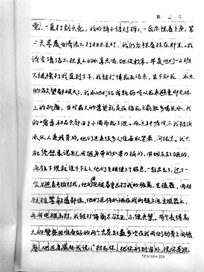 劉吉強還撰寫了一封控告信??馗嫘爬?,他描述了7天夢魘般的經(jīng)歷:辦案人員用腳踢他的臉,用手銬把他吊掛在鐵管做的橫梁上拳打腳踢,用電棍擊打身體的各部位。