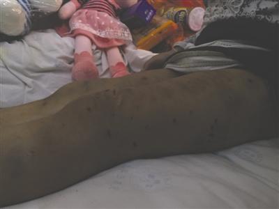 女孩小娟受傷的雙腿