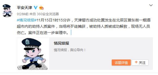 此前報道:天津一超市發(fā)生劫持人質(zhì)案件 民警仍在與歹徒談判