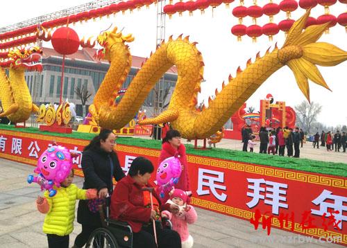 2月15日,河曲縣臨隩公園內(nèi)張燈結(jié)彩,歡樂祥和,一位行走不便的老人坐著輪椅在家人的陪護下游園觀燈?!皟晒?jié)”期間,這里由晉神能源、山西同德化工等九家駐河曲大企業(yè)制作的”展望十三五,全面建小康“企業(yè)形象宣傳燈展,吸引了觀眾眼球,各式彩燈造型新穎,栩栩如生,為節(jié)日增添了濃厚的喜慶氛圍。(鄔耿杰 攝)