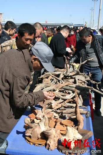 3月13日,原平市集貿(mào)市場上農(nóng)民正在賣形態(tài)各異廢棄的柏樹木根枝 他們變廢為寶促增收,很受市民喜愛收買。該市,采取多措并舉積極引導農(nóng)民增收致富,加快奔小康步伐。(趙月仁 攝)