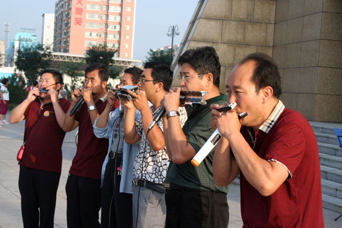 7月30日,原平市口琴協(xié)會(huì)演奏人員正在廣場(chǎng)上給觀眾演奏精彩的口琴技藝,深受群眾歡迎。該市注重文化建設(shè),活躍群眾文化生活多姿多彩。(趙春曉 攝)