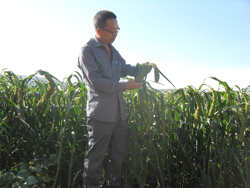8月16日,山西省偏關(guān)縣氣象局農(nóng)業(yè)氣象服務(wù)人員,深入本縣老營鎮(zhèn)老營村,調(diào)研“張雜谷”生長的氣象條件,指導(dǎo)農(nóng)民防御自然災(zāi)害。今年,受厄爾尼諾影響,偏關(guān)縣降水正常偏多,但極端天氣頻發(fā),僅暴雨就下了三次,冰雹下了三到四次,大風(fēng)出現(xiàn)了一次??上驳氖墙邓唷皬堧s谷”長勢(shì)喜人,谷穗長的大而粗。農(nóng)民最擔(dān)心的是大風(fēng)、冰雹和霜凍,三種災(zāi)害都會(huì)造成“張雜谷”減產(chǎn),甚至顆粒無收。農(nóng)業(yè)氣象人員向農(nóng)民講解了防御三種氣象災(zāi)害的方法,并提醒農(nóng)民朋友每天關(guān)注偏關(guān)縣電視天氣預(yù)報(bào),注意接收天氣預(yù)警短信,防患于未然,奪取今年農(nóng)業(yè)豐收。(彭愛國)