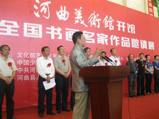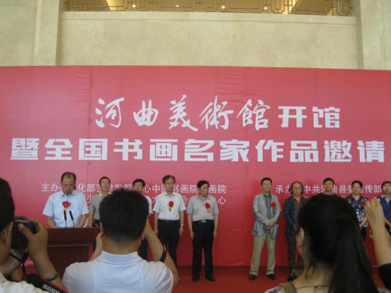 8月31日,河曲美術(shù)館開(kāi)館暨全國(guó)書(shū)畫(huà)名家作品邀請(qǐng)展開(kāi)幕儀式舉行。中國(guó)美術(shù)家協(xié)會(huì)主席劉大為題寫(xiě)了館名。著名書(shū)畫(huà)家張旭光、專(zhuān)業(yè)畫(huà)家胡寶利專(zhuān)程從北京趕來(lái)祝賀。 河曲是“民歌二人臺(tái)之鄉(xiāng)”、“中國(guó)民間藝術(shù)之鄉(xiāng)”,更是美術(shù)創(chuàng)作基地、攝影采風(fēng)基地。著名畫(huà)家吳冠中曾深情地感嘆:這里是美術(shù)創(chuàng)作的金礦!值此金秋之際,由文化部藝術(shù)發(fā)展中心中國(guó)書(shū)畫(huà)院國(guó)畫(huà)院、中國(guó)少數(shù)民族文化藝術(shù)促進(jìn)會(huì)、河曲縣委縣政府共同主辦的全國(guó)書(shū)畫(huà)名家作品邀請(qǐng)展走進(jìn)河曲。展覽共邀請(qǐng)到書(shū)畫(huà)精品43件,作品題材豐富,花鳥(niǎo)、山水、人物、書(shū)法兼?zhèn)?,表現(xiàn)形式多樣,創(chuàng)作風(fēng)格或雄宏大氣、或典雅清麗?;顒?dòng)的舉辦,將對(duì)普及提升基層群眾文化品味、引領(lǐng)時(shí)代正氣、助力河曲發(fā)展起到積極作用,定會(huì)使“歌鄉(xiāng)”河曲的書(shū)畫(huà)水平再上一個(gè)新臺(tái)階。