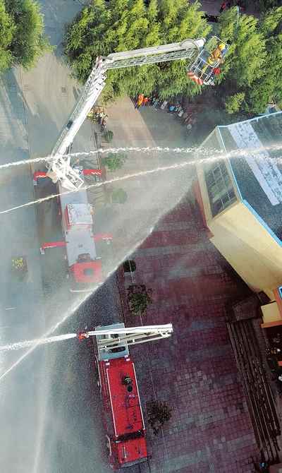 9月26日,在忻州師范學(xué)院內(nèi),當(dāng)?shù)叵啦块T舉行了國慶節(jié)前應(yīng)急疏散演練,其中包括滅火器材使用、火場逃生自救等演練項(xiàng)目。(樊晶璟 攝)