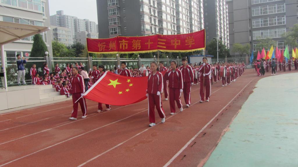 沐浴著秋天的朝陽,享受著清爽的秋風(fēng)。9月28日上午,忻州市第十三中學(xué)第十一屆秋季運動會開幕式在學(xué)校操場隆重舉行。伴隨著激昂的運動員進(jìn)行曲,國旗隊、鼓樂隊、彩旗隊、裁判員代表和運動員方隊秩序井然而又氣勢磅礴地走入會場。在莊嚴(yán)的國歌聲中,全體師生凝神肅立,齊唱國歌。鮮艷的五星紅旗在操場上冉冉升起。