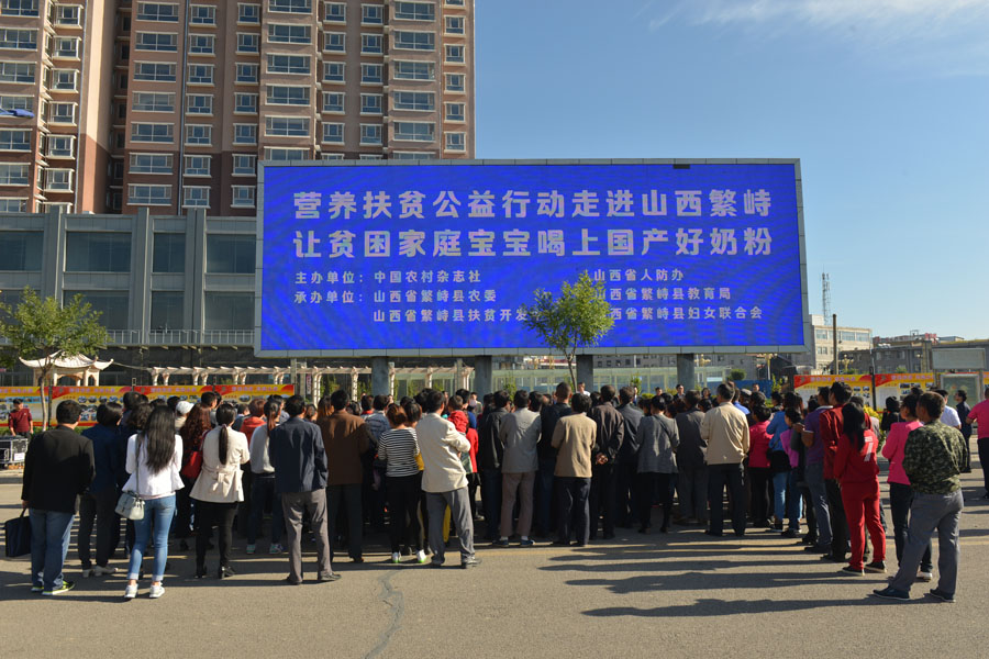 此次活動(dòng)得到了繁峙縣農(nóng)委、教育局、扶貧開發(fā)中心、婦聯(lián)等單位的支持。活動(dòng)現(xiàn)場(chǎng),中國(guó)農(nóng)村雜志社總編彭小元、省人防辦主任孫群等領(lǐng)導(dǎo)現(xiàn)場(chǎng)向3個(gè)雙胞胎家庭代表、15個(gè)貧困家庭代表、5個(gè)貧困老人代表發(fā)放了奶粉。此次活動(dòng),北京三元食品股份有限公司共向繁峙縣杏園鄉(xiāng)、光裕堡鄉(xiāng)提供了價(jià)值70萬(wàn)元的嬰幼兒配方奶粉、兒童成長(zhǎng)奶粉和2000冊(cè)營(yíng)養(yǎng)扶貧手冊(cè),還可在5年內(nèi)享受優(yōu)惠價(jià)。
