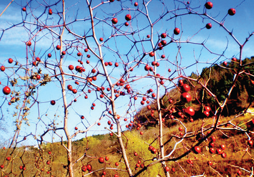 春天山坡上到處都是長(zhǎng)出來(lái)的小酸棗樹。鄉(xiāng)民秋天能隨處摘到紅艷艷的酸棗果。小時(shí)候,我們眼巴巴盼著能吃到的就是這種酸中帶甜的小果子,而經(jīng)常給幼時(shí)的我采摘這種小果子的就是我的姥爺。