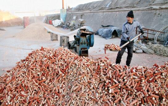 12月14日,原平市文殊莊村菇農(nóng)正在將玉米芯粉碎裝菌袋。該市積極引導(dǎo)農(nóng)民利用玉米芯、鋸末、麩皮等廢料為基料,發(fā)展食用菌種植,并通過(guò)成立食用菌種植專業(yè)合作社、引進(jìn)龍頭企業(yè)進(jìn)行規(guī)?;?、產(chǎn)業(yè)化經(jīng)營(yíng),使當(dāng)?shù)剞r(nóng)民走上發(fā)展食用菌種植的致富路。(褚震 攝)