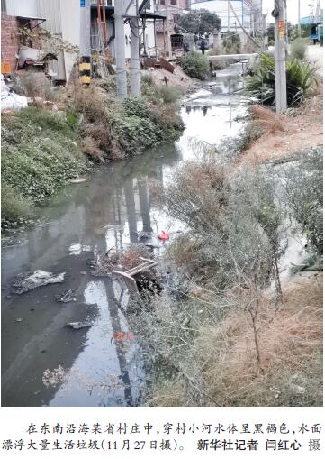 ——農村污水治理“梗阻”現象調查 新華社記者 在我國廣大農村,生活污水處置一直是人居環(huán)境整治的突出短板。記者近日跟隨國務院農村人居環(huán)境檢查組在全國多地現場檢查發(fā)現,一些村鎮(zhèn)黑臭水體問題突出,部分村鎮(zhèn)小作坊、畜禽養(yǎng)殖污水違規(guī)排放時有發(fā)生,污水治理未與農村改廁同步銜接致大量污水直排等問題,亟待解決。 多地農村污水直排,污染環(huán)境觸目驚心 在東南沿海某省村莊中的一座小橋上,一幅寫著“小康不小康,關鍵看老鄉(xiāng)”的巨型宣傳牌十分醒目。然而,在被廣告牌擋住的地方,水面漂浮大量的塑料袋、易拉罐、泡面盒等生活垃圾,水體呈黑褐色。