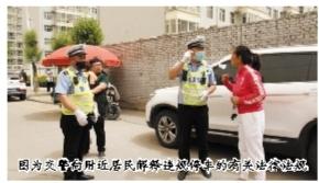 圖為交警向附近居民解釋違規(guī)停車(chē)的有關(guān)法律法規(guī)