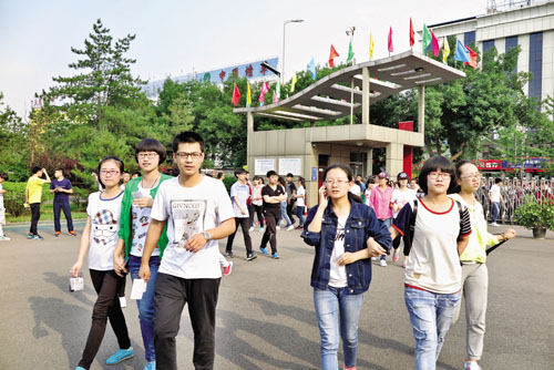圖為6月6日下午5時,忻州一中考點(diǎn)的考生們進(jìn)入校區(qū),確認(rèn)、熟悉考場環(huán)境。