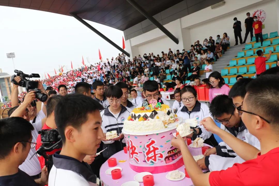 十八歲,成年成人;十八歲,成長成才。學(xué)校每年在這個時候都會為學(xué)子們舉行集體生日,家長們則為每個班準(zhǔn)備了生日蛋糕,在父母、師長的見證和祝福下,同學(xué)們走向人生的新階段。年級主任解鴻志、張高強(qiáng)老師共同推來一個巨型蛋糕,老師們一齊向?qū)W生祝福,校領(lǐng)導(dǎo)共同為學(xué)生點(diǎn)燃生日蠟燭,伴隨著《生日快樂》的歌聲,同學(xué)們雙目微閉,雙手合十,面對父母、師長,面對自己憧憬的未來,默默許下美好愿望。