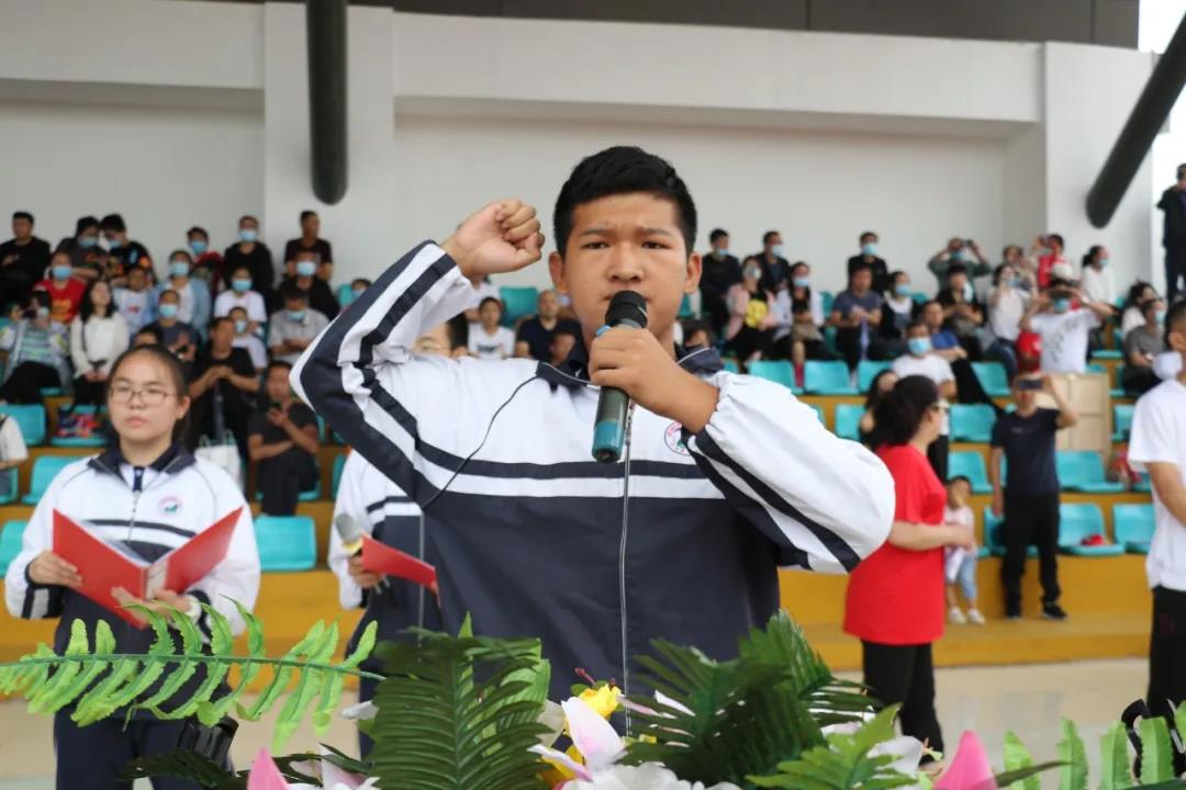 “少年智則國智,少年富則國富;少年強(qiáng)則國強(qiáng),少年獨(dú)立則國獨(dú)立……”激昂奮進(jìn)的聲音在北校區(qū)的操場上空回響,在全體高三學(xué)生《少年中國說》激情澎湃的誦讀聲中,本次大會正式開始。莊嚴(yán)的升旗儀式后,學(xué)生代表、教師代表和家長代表依次獻(xiàn)詞:好友同窗與共的奮斗時光,老師日復(fù)一日的悉心陪伴,父母無私無盡的付出關(guān)愛,在一句句溫情感人的獻(xiàn)詞中歷歷浮現(xiàn),激蕩心靈。