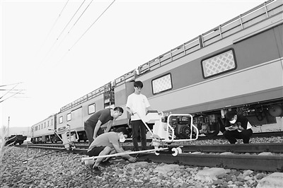 重慶電子工程職業(yè)學(xué)院師生正在使用軌枕螺栓高精度智能檢測與檢修設(shè)備進行現(xiàn)場勘測。受訪者供圖