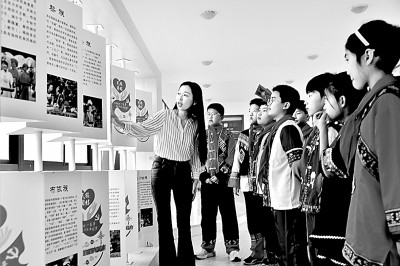 江蘇省如皋經濟技術開發(fā)區(qū)第三實驗小學“紅石榴家園”,統(tǒng)戰(zhàn)部門工作人員向學生介紹各民族文化習俗。吳樹建攝/光明圖片