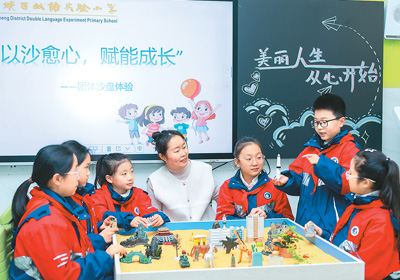 近日,多地中小學(xué)開學(xué),迎來春季新學(xué)期。圖為山東省棗莊市薛城區(qū)雙語實驗小學(xué)老師為學(xué)生進(jìn)行心理健康輔導(dǎo)。王龍飛攝(新華社發(fā))