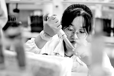 上海海洋大學(xué)水產(chǎn)養(yǎng)殖專業(yè)的博士研究生王賀在導(dǎo)師指導(dǎo)下研究遺傳育種。新華社發(fā)