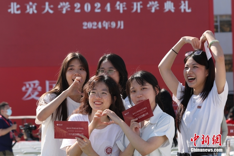 資料圖:新生在開學典禮后合影留念。中新社記者 蔣啟明 攝