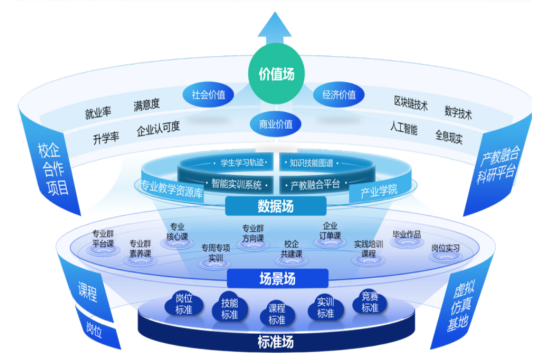 “四象場域共生”模型圖 學(xué)院商數(shù)專業(yè)群將“共生”理念融入職教實(shí)踐,提出“四象場域共生”育人模型,構(gòu)建“標(biāo)準(zhǔn)場—場景場—數(shù)據(jù)場—價(jià)值場”四維聯(lián)動(dòng)機(jī)制: 標(biāo)準(zhǔn)場:聯(lián)合多家知名企業(yè),制定覆蓋12個(gè)崗位群、48項(xiàng)技能的人才培養(yǎng)標(biāo)準(zhǔn),推動(dòng)課程內(nèi)容與產(chǎn)業(yè)需求精準(zhǔn)對(duì)接; 場景場:依托企業(yè)產(chǎn)業(yè)學(xué)院、“數(shù)商興農(nóng)”中心等實(shí)踐平臺(tái),引入“618大促分析”“智能財(cái)稅優(yōu)化”等真實(shí)項(xiàng)目,強(qiáng)化學(xué)生實(shí)戰(zhàn)能力; 數(shù)據(jù)場:搭建學(xué)生成長畫像系統(tǒng),采集多維數(shù)據(jù),運(yùn)用AI技術(shù)分析生成個(gè)性化培養(yǎng)路徑; 價(jià)值場:以就業(yè)適配度、職業(yè)發(fā)展質(zhì)量和社會(huì)服務(wù)貢獻(xiàn)為衡量標(biāo)準(zhǔn),近三年畢業(yè)生本地就業(yè)率95.74%,彰顯育人成效。 四場域通過“耦合—適配—增值”閉環(huán)運(yùn)行,實(shí)現(xiàn)資源聚合與能力躍遷。 打造“四位一體”一體化資源共生體系 為讓“星火”燃成“烈焰”,專業(yè)群構(gòu)建“四階實(shí)訓(xùn)、雙師協(xié)同、思政協(xié)同、項(xiàng)目轉(zhuǎn)化”一體化資源體系。實(shí)訓(xùn)遵循“認(rèn)知—專項(xiàng)—綜合—?jiǎng)?chuàng)新”四階遞進(jìn)路徑,年覆蓋學(xué)生700余人,完成真實(shí)項(xiàng)目53項(xiàng),孵化創(chuàng)業(yè)團(tuán)隊(duì)12個(gè),獲評(píng)廣東省虛擬仿真實(shí)訓(xùn)基地。 師資建設(shè)實(shí)行“內(nèi)培外引”雙軌模式:內(nèi)建“周教研、月研討”常態(tài)化成長機(jī)制,培育南粵優(yōu)秀教師2人、市級(jí)優(yōu)秀教師8人;外引5位企業(yè)技術(shù)總監(jiān),組建省級(jí)產(chǎn)業(yè)導(dǎo)師團(tuán)隊(duì),雙師型教師占比達(dá)96.66%。 同步推進(jìn)“三全四強(qiáng)”思政育人模式,構(gòu)建五維育人體系,學(xué)生行業(yè)認(rèn)同感提升37%,雇主滿意度超95%,近三年獲得省級(jí)以上獎(jiǎng)項(xiàng)37項(xiàng)。轉(zhuǎn)化22個(gè)企業(yè)項(xiàng)目為120余個(gè)教學(xué)案例,持續(xù)為企業(yè)提升經(jīng)濟(jì)效益;學(xué)生團(tuán)隊(duì)獲新加坡全球品牌策劃大賽冠軍。 四維聯(lián)動(dòng),形成多方協(xié)同共生的育人生態(tài),為“數(shù)字工匠”培養(yǎng)提供有力支撐。