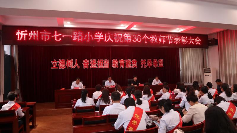 金風(fēng)送爽,涼霜驚秋。伴隨著時(shí)光款款的腳步,相攜著歲月累累的果實(shí),為傳承尊師重教的文明火種,增強(qiáng)教師的光榮感、責(zé)任感、使命感,培養(yǎng)學(xué)生尊師重教的良好品德,在第36個(gè)教師節(jié)即將來(lái)臨之際,9月9日下午,忻州市七一路小學(xué)舉行了“立德樹(shù)人奮進(jìn)擔(dān)當(dāng),教育脫貧托舉希望”第36個(gè)教師節(jié)表彰活動(dòng),會(huì)議由郭彥君副校長(zhǎng)主持,全體教職工參加了表彰大會(huì)。