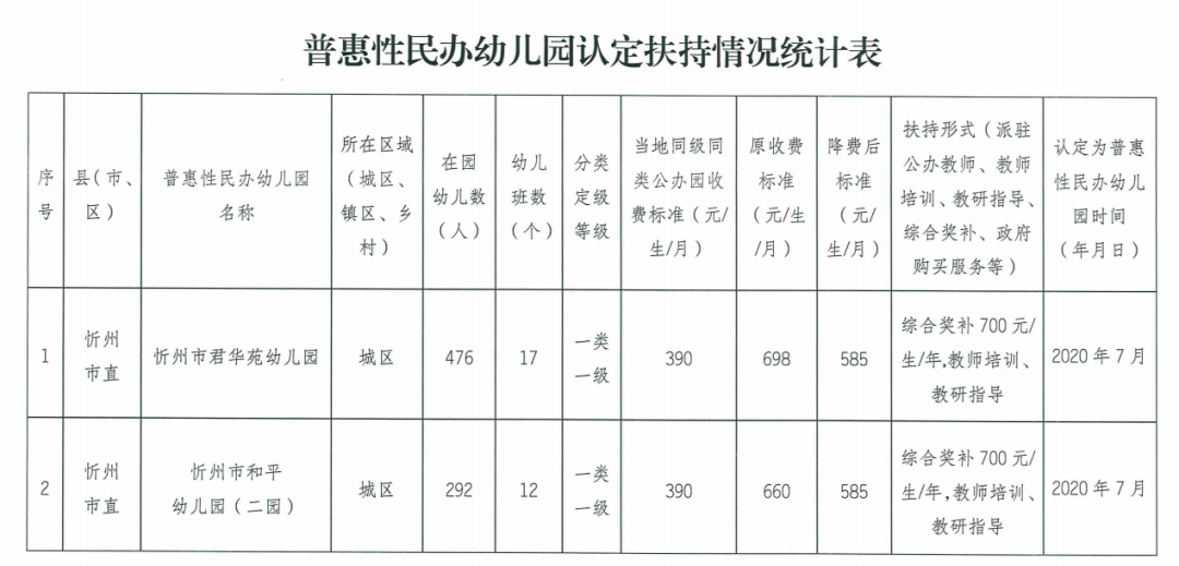 忻州市教育局關(guān)于認定2所市直普惠性民辦幼兒園的通知