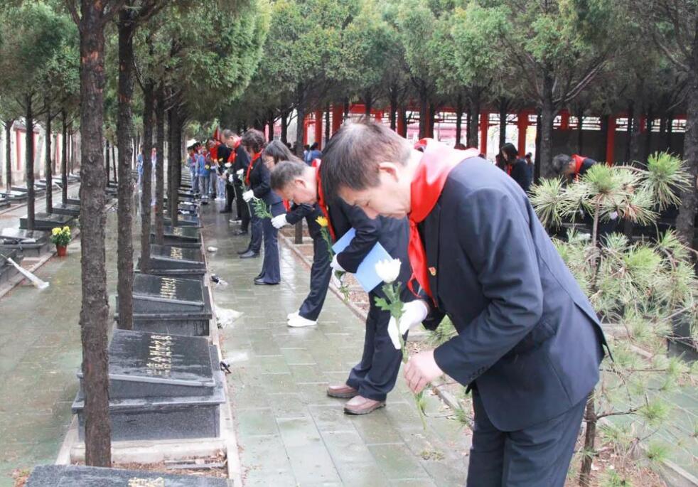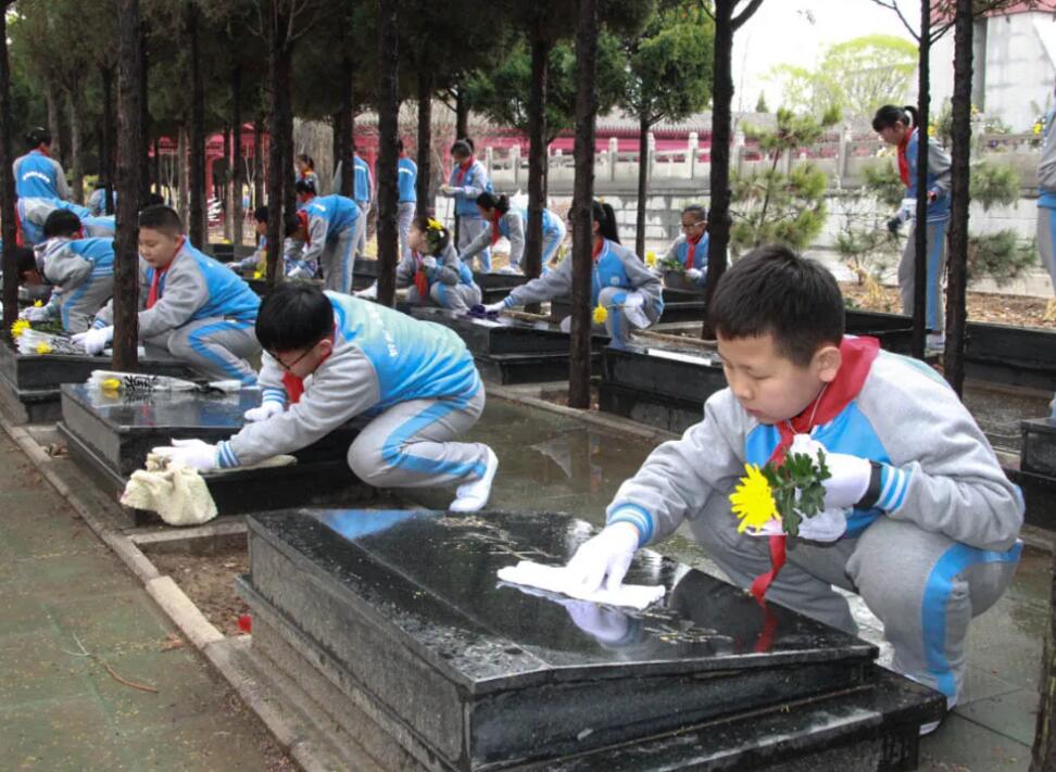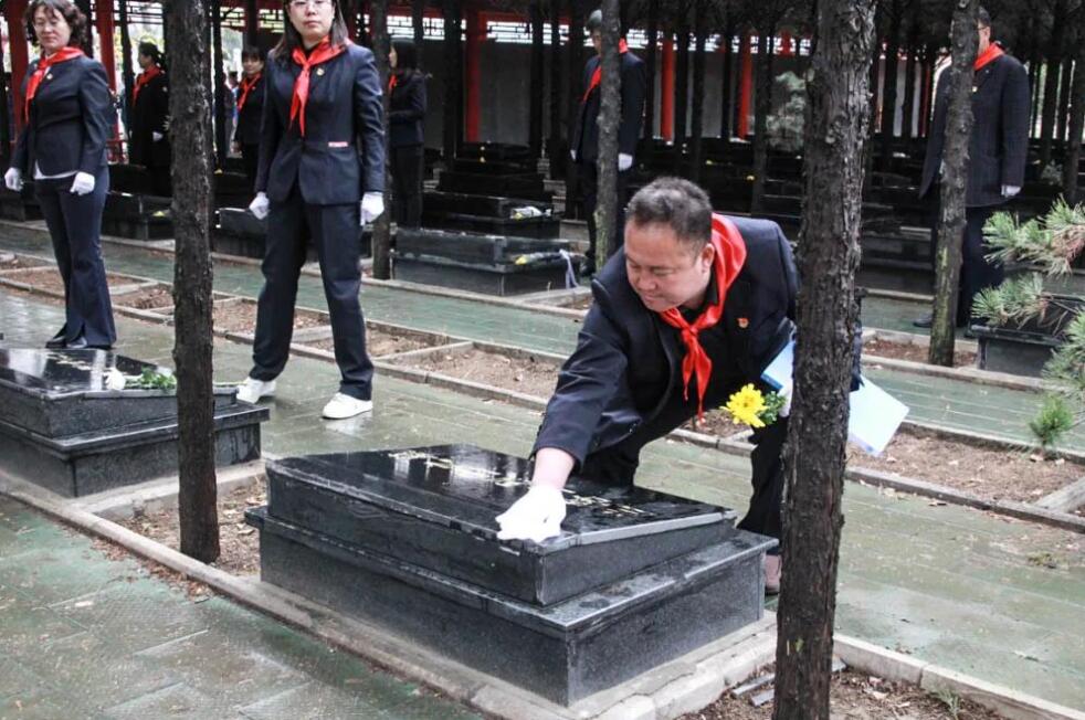 在祭奠活動中,同學(xué)們跟隨盧俊芬老師一道學(xué)習(xí)了趙正午烈士的革命故事,為烈士陵園的先烈們敬獻(xiàn)花籃、默哀,并細(xì)致的擦拭了每座烈士墓碑,以此表達(dá)對先烈們的無限哀思。