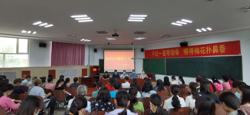 金風(fēng)喜雨送秋涼,又是一年開學(xué)忙。8月31日上午,忻州五中全體教職工齊聚階梯教室,隆重召開了2021-2022學(xué)年度上半學(xué)期開學(xué)教職工大會(huì)。