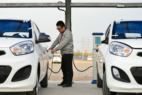 資料圖片:4月13日,河北省清河縣一家新能源汽車公司的工人在為新生產的電動汽車充電。新華社發(fā)