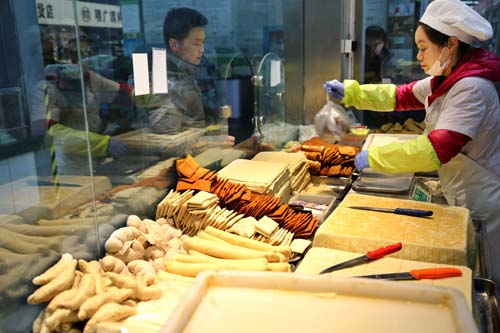 4月11日,市民在江蘇連云港市連云區(qū)一市場(chǎng)選購豆制品。新華社發(fā)(王春攝)
